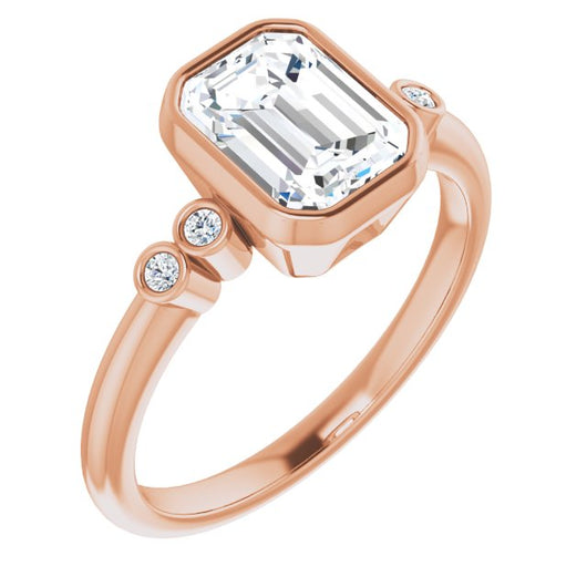 10K Rose Gold Customizable 5-stone Bezel-set Emerald/Radiant Cut Design with Quad Round-Bezel Side Stones