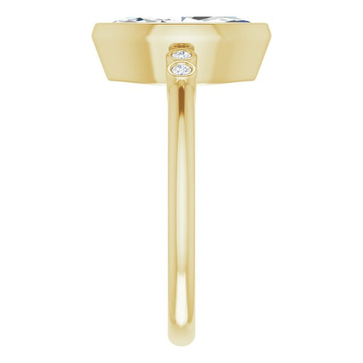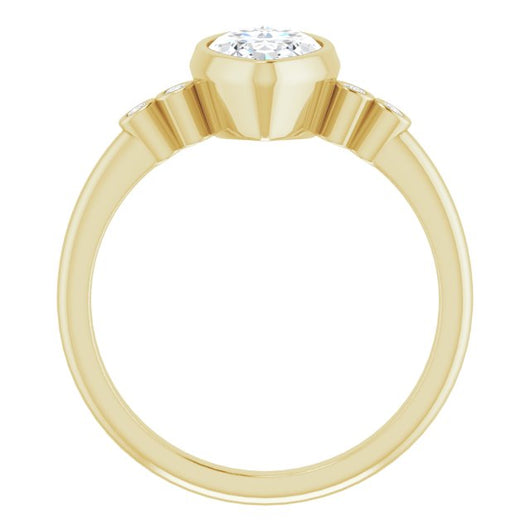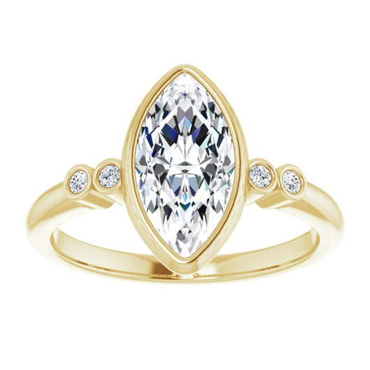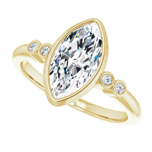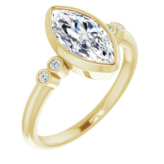 10K Yellow Gold Customizable 5-stone Bezel-set Marquise Cut Design with Quad Round-Bezel Side Stones