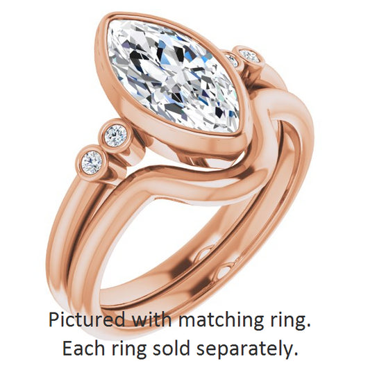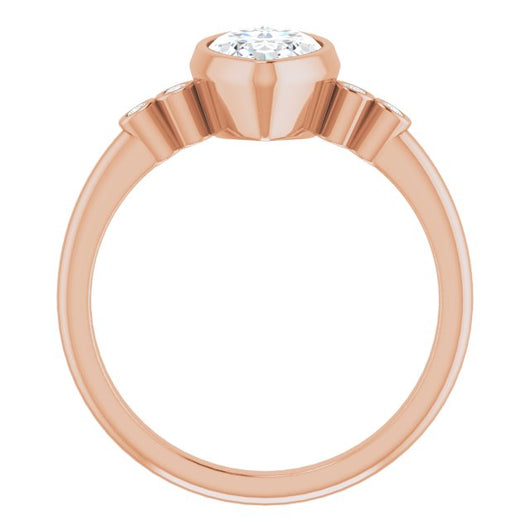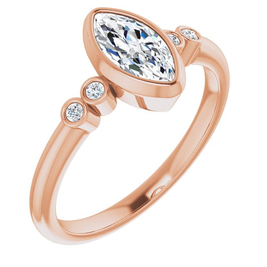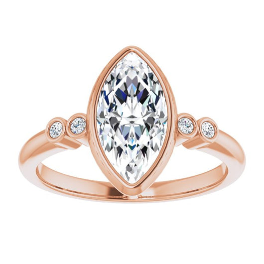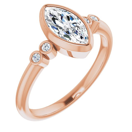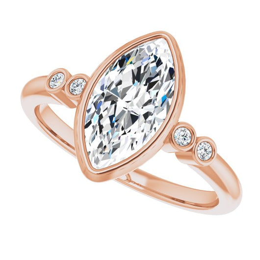 10K Rose Gold Customizable 5-stone Bezel-set Marquise Cut Design with Quad Round-Bezel Side Stones