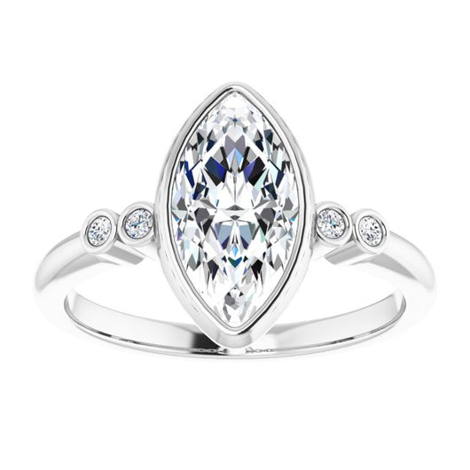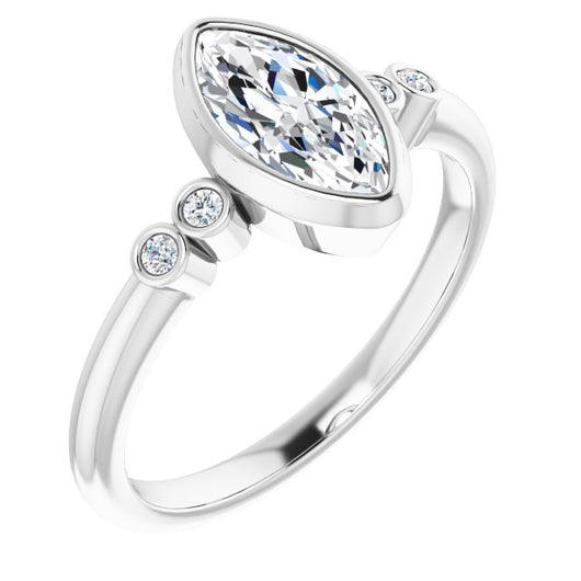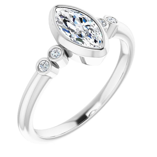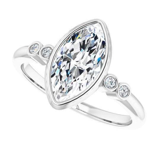 10K White Gold Customizable 5-stone Bezel-set Marquise Cut Design with Quad Round-Bezel Side Stones