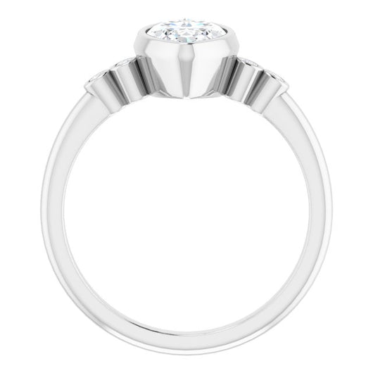 Introducing The Mandira from CubicZirconia.com, a 5-stone bezel-set Marquise cut engagement ring of distinction. eight (8) center stone shape options are available for the bezel-set center setting, including as pictured and priced on this product webpage with Marquise cut center stone from 0.75 to 2.00 carats of our AAAAA (5A) diamond-quality cubic zirconia. Click the "customize" link provided to see/purchase The Mandira with eight (8) other center stone shapes.