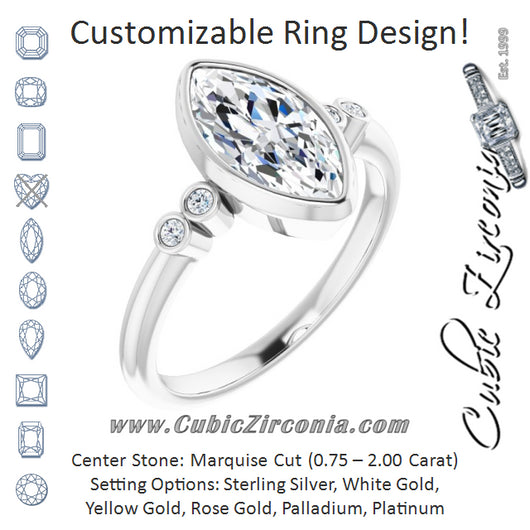 Cubic Zirconia Engagement Ring- The Mandira (Customizable 5-stone Bezel-set Marquise Cut Design with Quad Round-Bezel Side Stones)