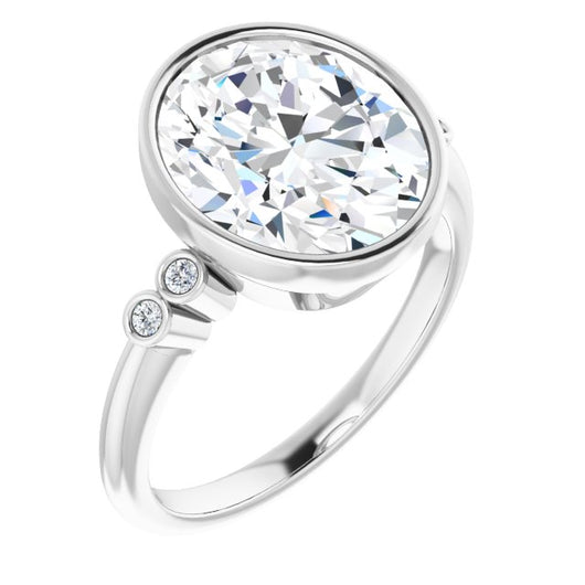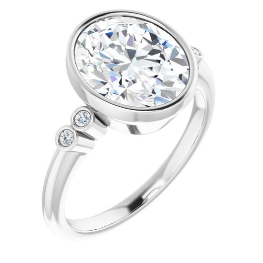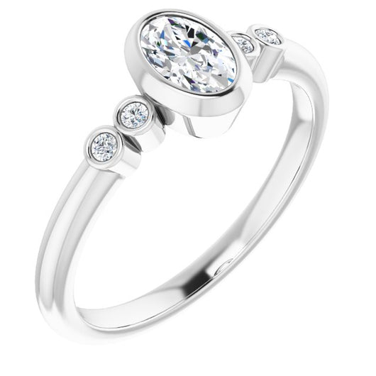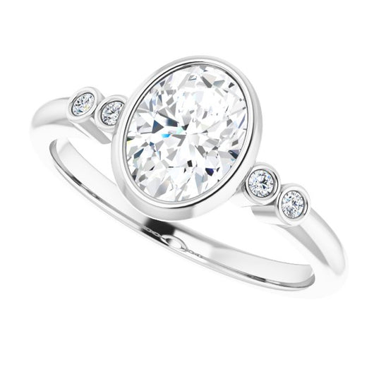 Cubic Zirconia Engagement Ring- The Mandira (Customizable 5-stone Bezel-set Oval Cut Design with Quad Round-Bezel Side Stones)