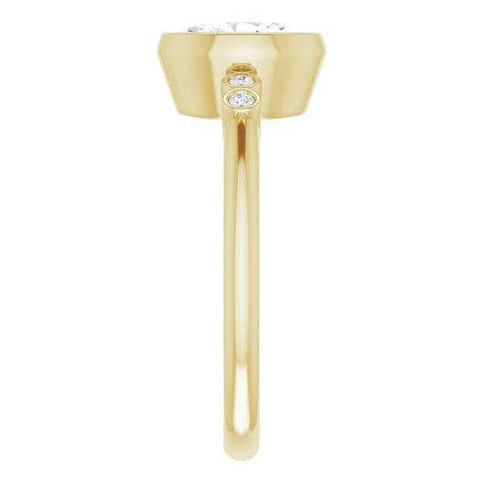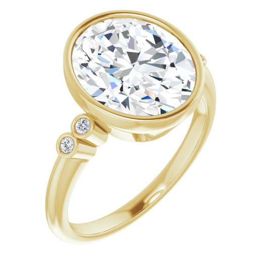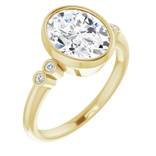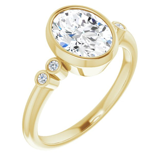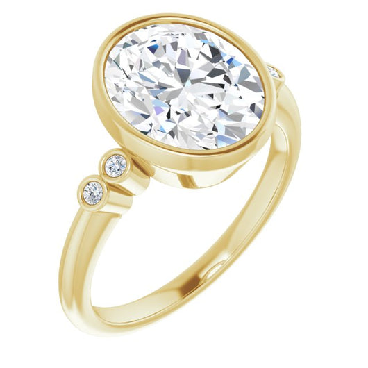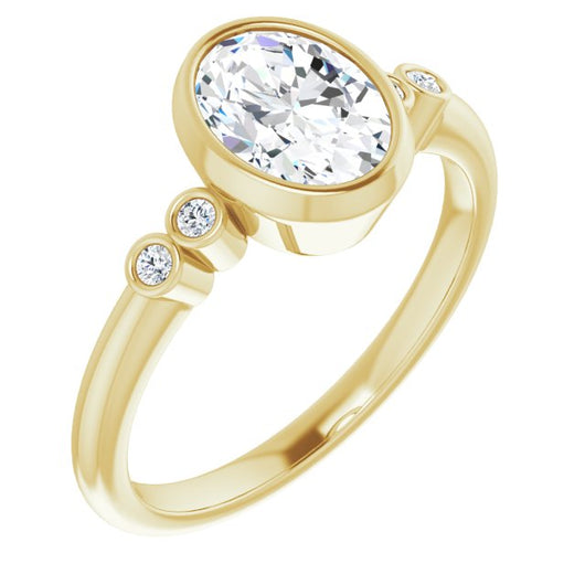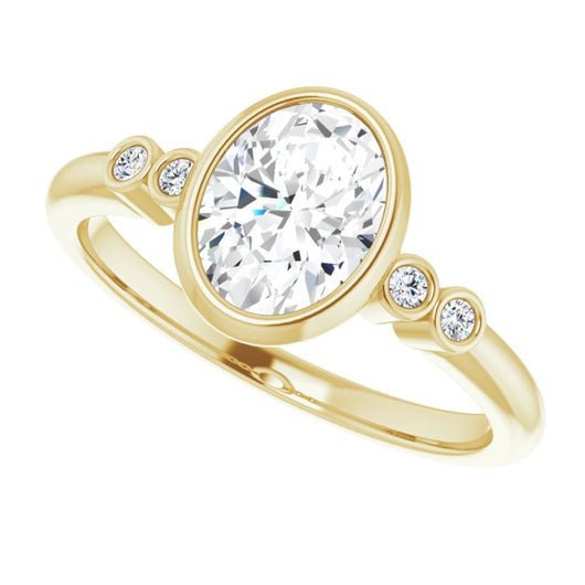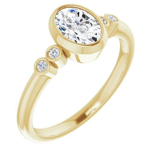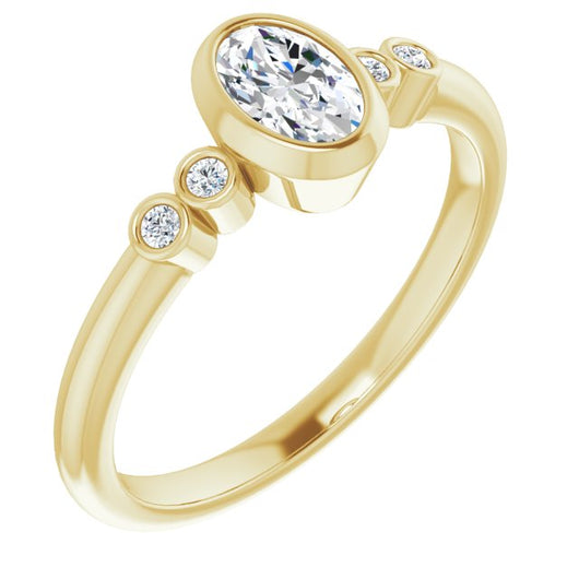 10K Yellow Gold Customizable 5-stone Bezel-set Oval Cut Design with Quad Round-Bezel Side Stones