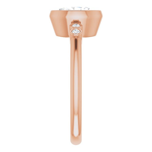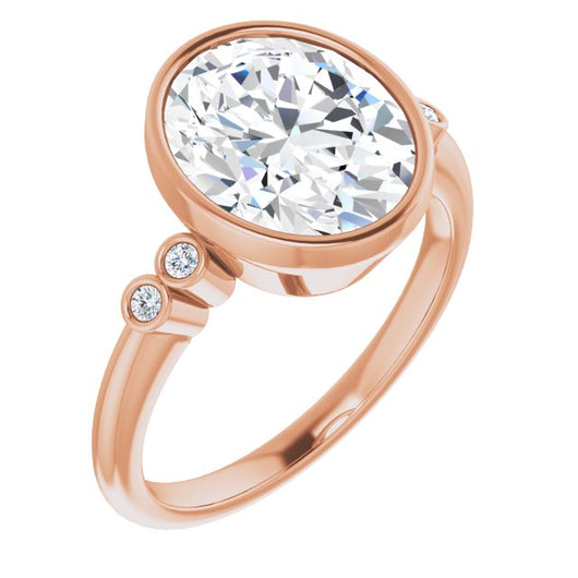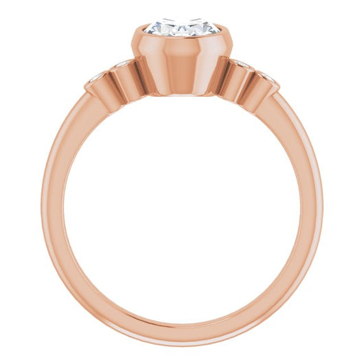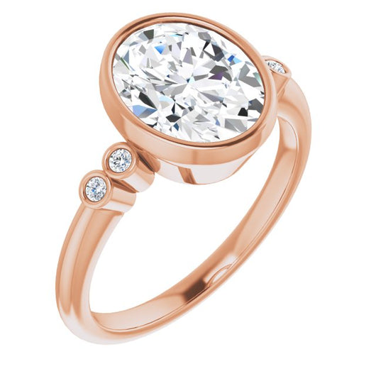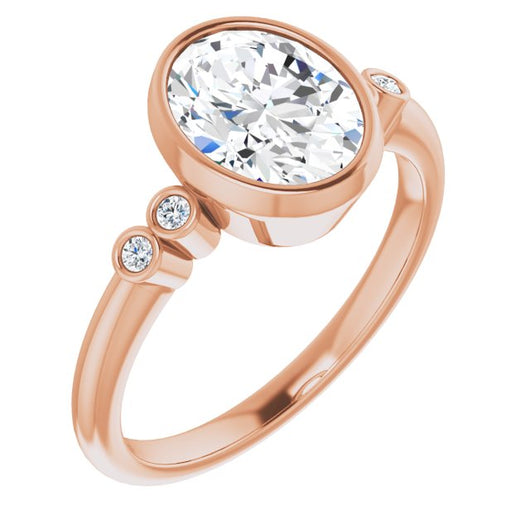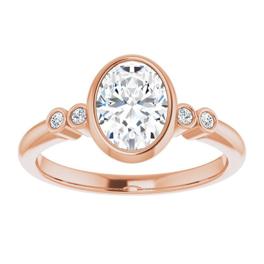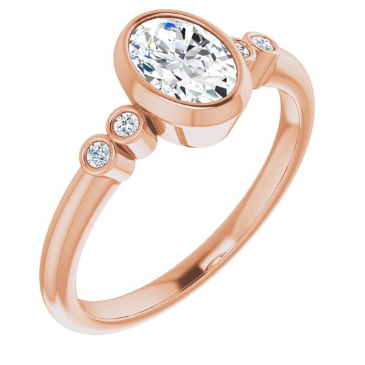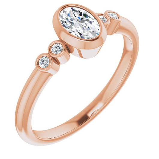 10K Rose Gold Customizable 5-stone Bezel-set Oval Cut Design with Quad Round-Bezel Side Stones