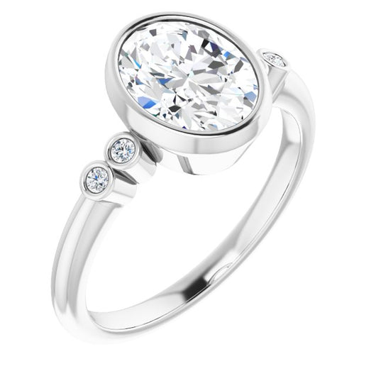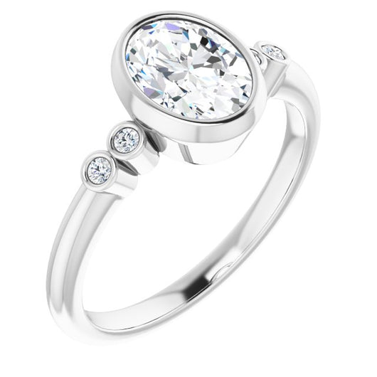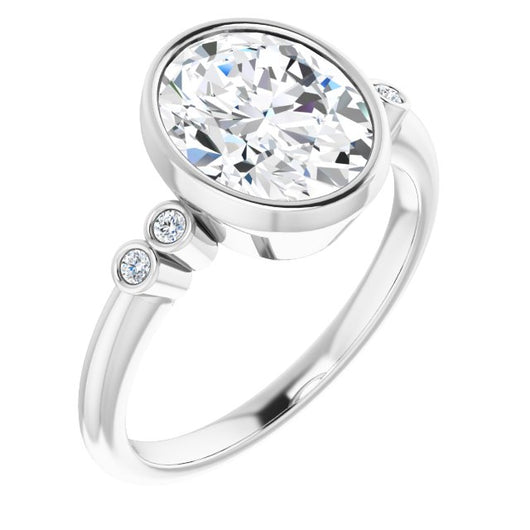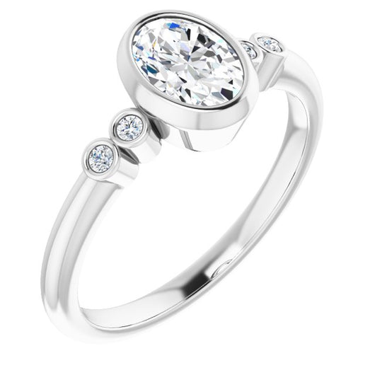 10K White Gold Customizable 5-stone Bezel-set Oval Cut Design with Quad Round-Bezel Side Stones