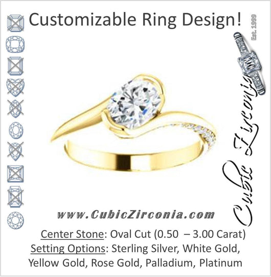 Cubic Zirconia Engagement Ring- The Marcia (Customizable Bezel-set Oval Cut Bypass Design with 3-sided Mobius-inspired Split-Pavé Band)
