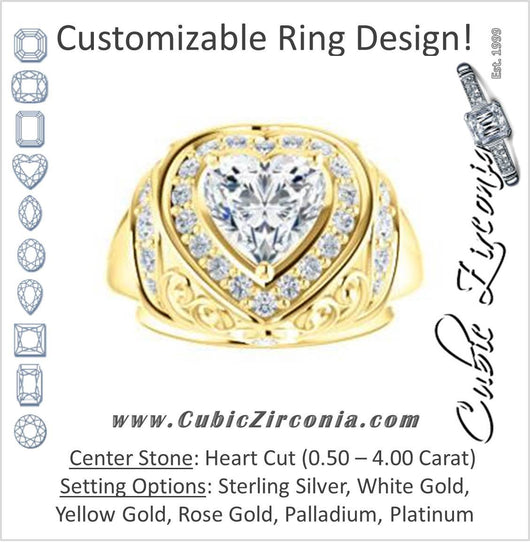 Cubic Zirconia Engagement Ring- The Mariah (Heart Center Halo-Style Lattice with Accented Step-Setting)
