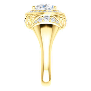 * The exact dimensions and number of side stones (including accent, pave, or halo stones) and/or the total carat weight (TCW) of your ring will vary up or down depending on your choice of any customizable options for center stone shape or carat size and finger ring size.