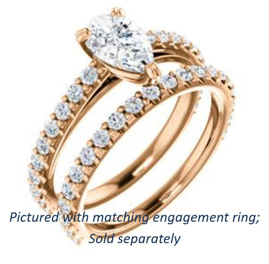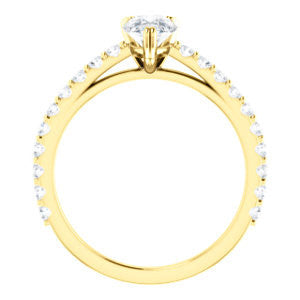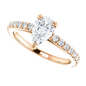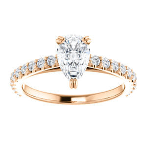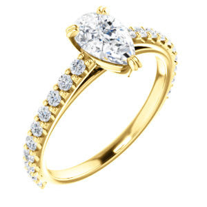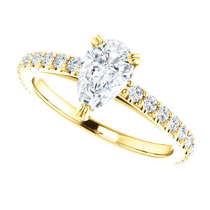 Center Stone Shape: Pear Cut (as pictured). See this customizable ring set with other available center stone shapes here: customize setting.