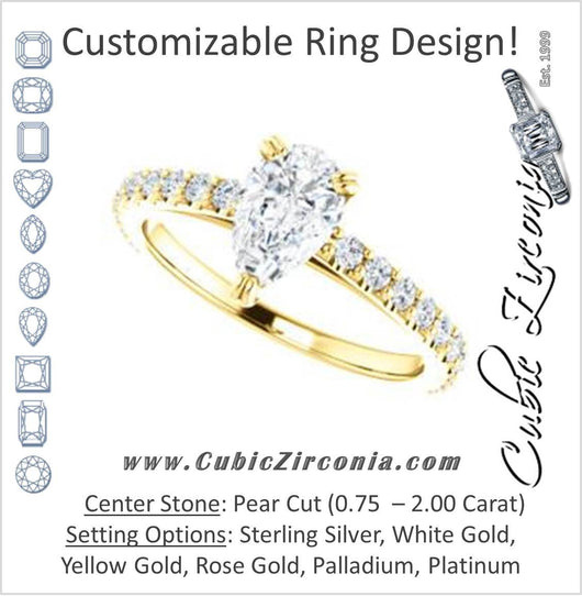 Cubic Zirconia Engagement Ring- The Marianne (Customizable Cathedral-set Pear Cut Style with Thin Pavé Band)