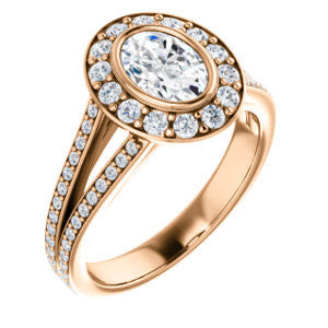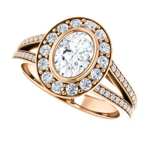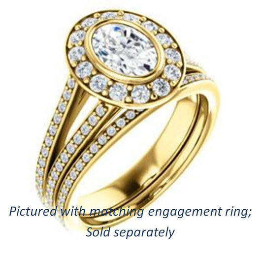 Cubic Zirconia Engagement Ring- The Maricela (Customizable Bezel-Halo Oval Cut Ring with Wide Tapered Pavé Split Band & Decorative Trellis)