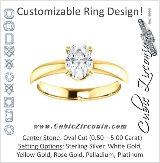 Cubic Zirconia Engagement Ring- The Marie Rosalind (Customizable Oval Cut Solitaire with Tooled Trellis Design)