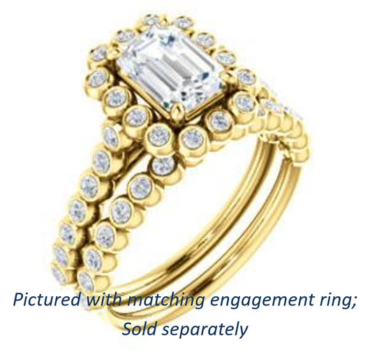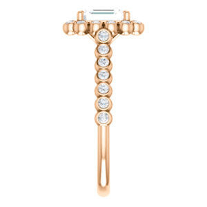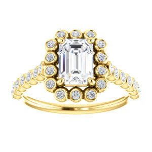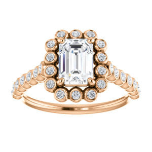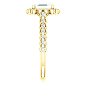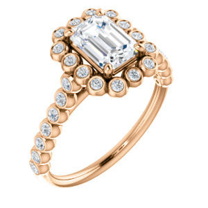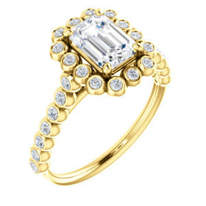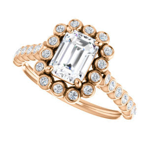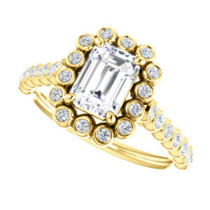 Cubic Zirconia Engagement Ring- The Maritere (Customizable Emerald Cut style with Round-Bezel Floral Halo and Accented Band)