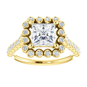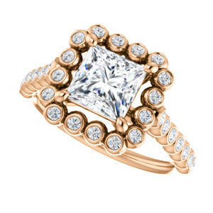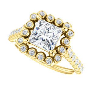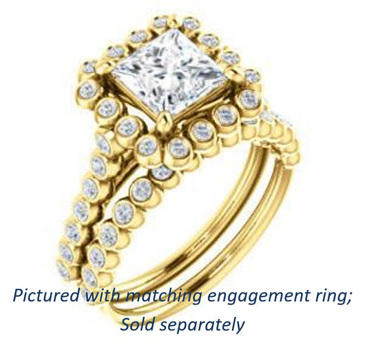 Cubic Zirconia Engagement Ring- The Maritere (Customizable Princess Cut style with Round-Bezel Floral Halo and Accented Band)