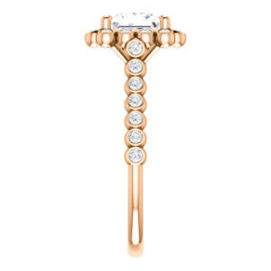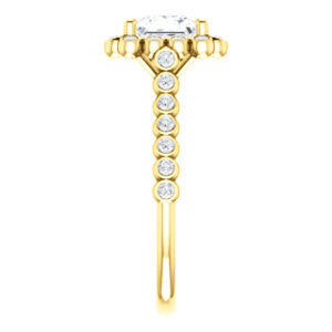 “Every time I hear her name, it's like the sun shined through the rain.” Who else wants to quietly bask in the glow of her beauty? The Maritere engagement ring is soft and welcoming, her bezel-accented halo opening around the center setting like a flower bloom on a warm spring day. This is a ring for a woman whose smile shines through no matter what, a jewelry piece simply meant to complement but never overpower that existing brightness. The Maritere loves to share her bezel-accented band with those who come to her gently, in deference to her thin tapered band.