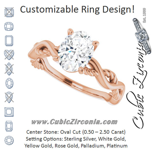 10K Rose Gold Customizable Oval Cut Solitaire with Twisting Split Band