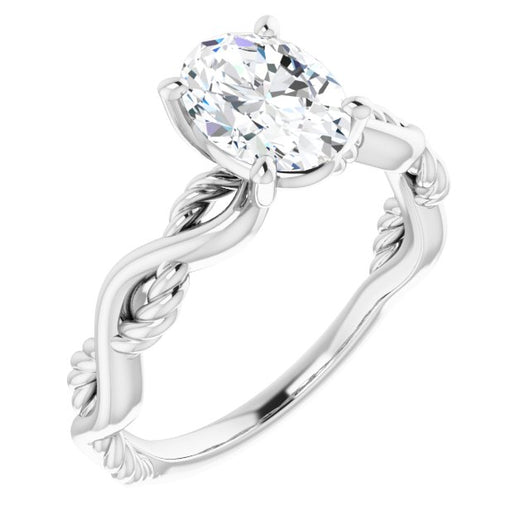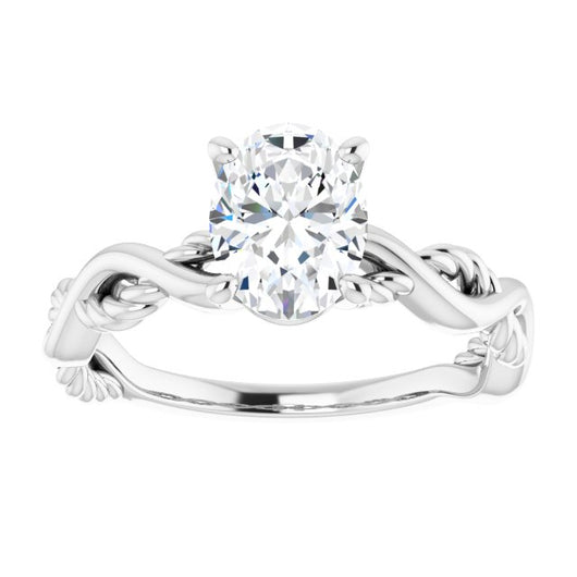 10K White Gold Customizable Oval Cut Solitaire with Twisting Split Band