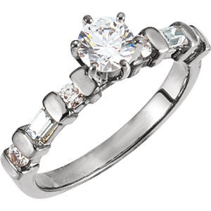 Get all the sparkle of diamonds at a fraction of the price on this 7-stone baguette & round accents CZ engagement ring from the one and only CubicZirconia.com. If you're looking for a dazzling display of precision bejeweled craftsmanship, look no further than The Marlene, a best-selling design that is both classic and sophisticated.
