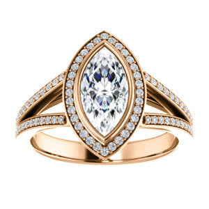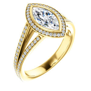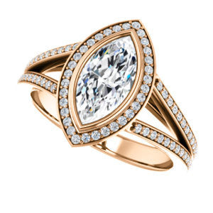 Cubic Zirconia Engagement Ring- The Maritza (Customizable Bezel-Halo Marquise Cut Style with Pavé Split Band & Euro Shank)