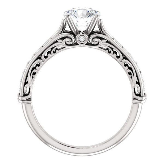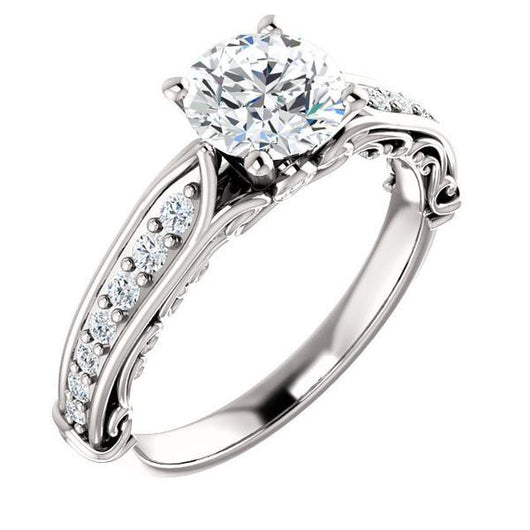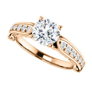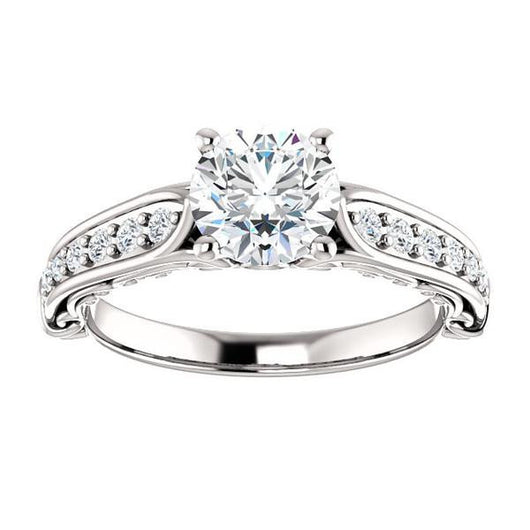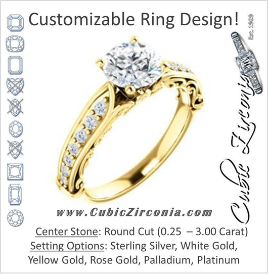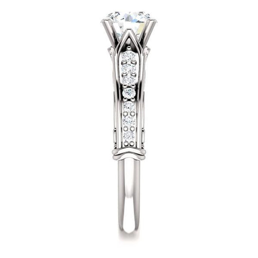 Cubic Zirconia Engagement Ring- The Martha (Customizable Round Cut Setting with Pavé Three-sided Band and Peekaboos)