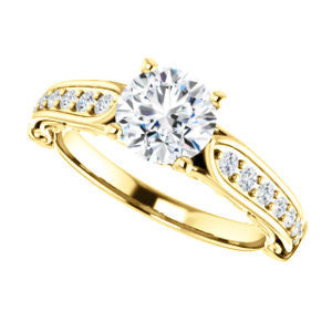 Center Stone Shape: Round Cut (as pictured). See this customizable ring set with other available center stone shapes here: customize setting.