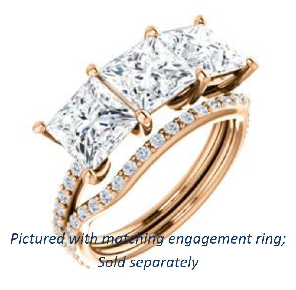 Cubic Zirconia Engagement Ring- The Mary Helen (Customizable Triple Princess Cut Design with Ultra Thin Pavé Band)
