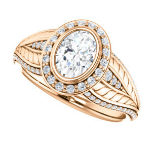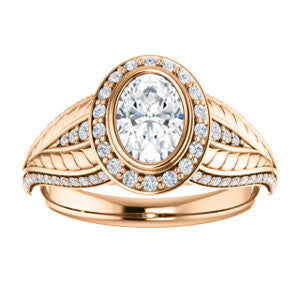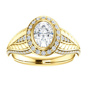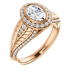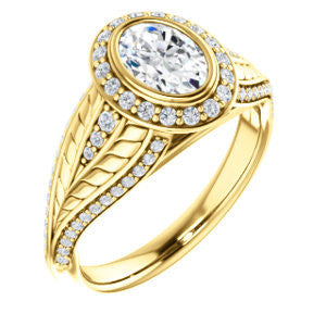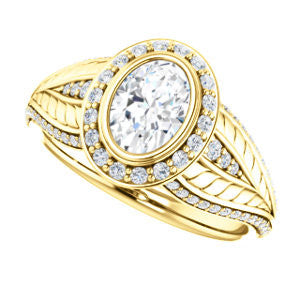 Cubic Zirconia Engagement Ring- The Mary Jane (Customizable Bezel-Halo Oval Cut Design with Wide Filigree & Accent Band)