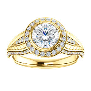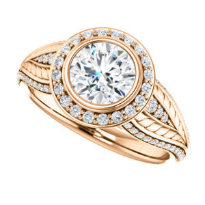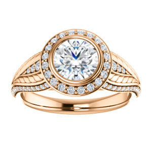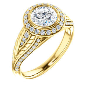 Cubic Zirconia Engagement Ring- The Mary Jane (Customizable Bezel-Halo Round Cut Design with Wide Filigree & Accent Band)