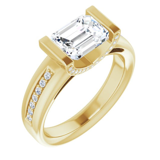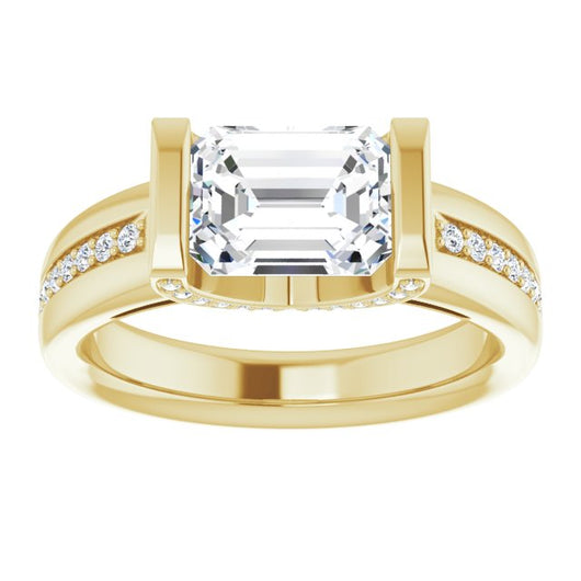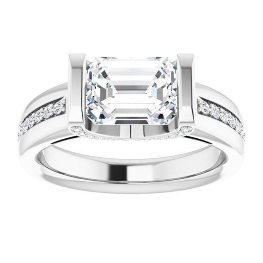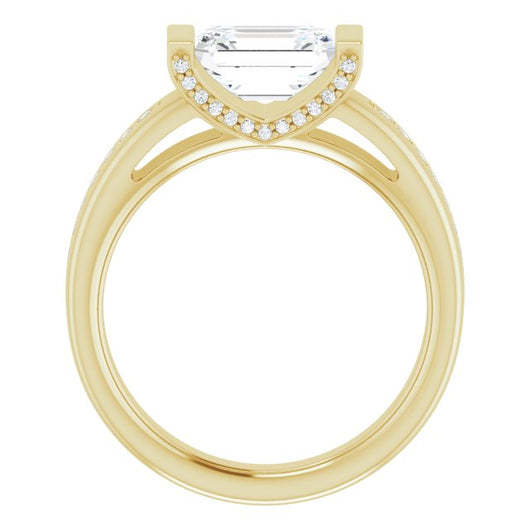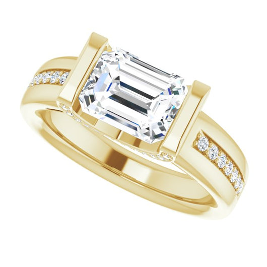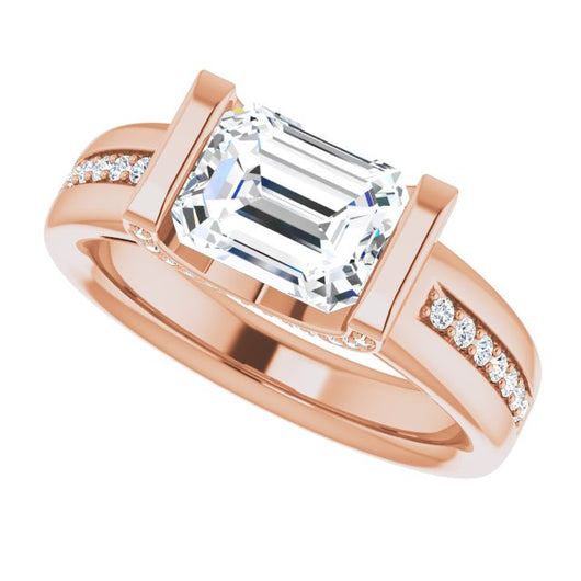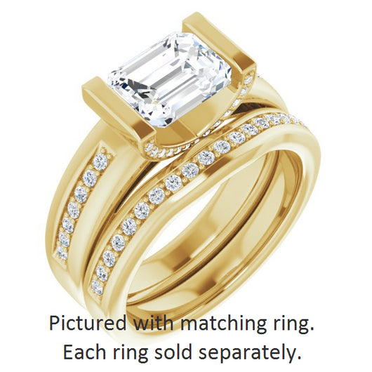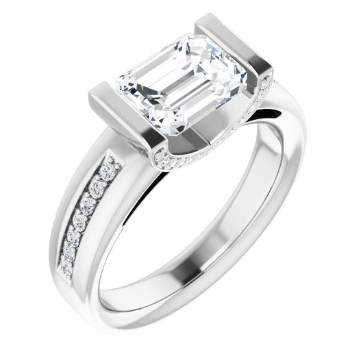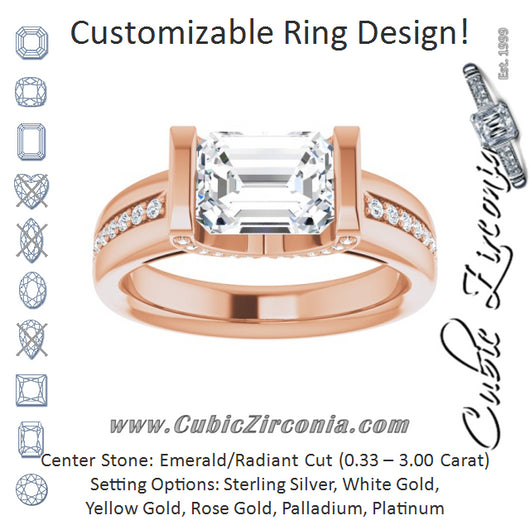 Center Stone Shape: Emerald Cut (as pictured). See this customizable ring set with other available center stone shapes here: customize setting.