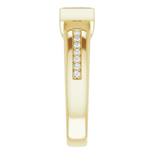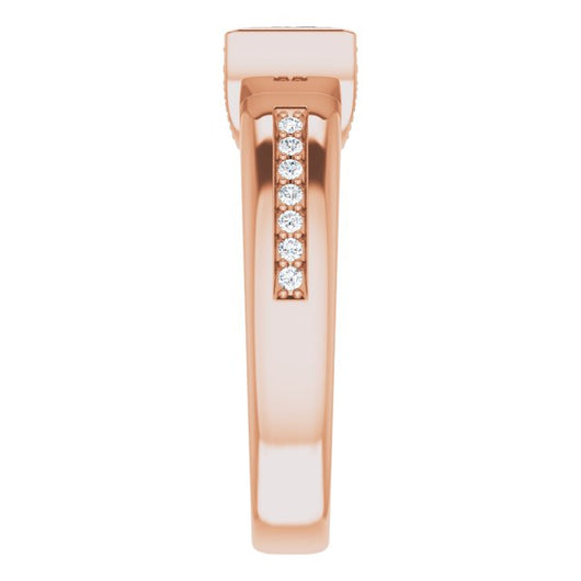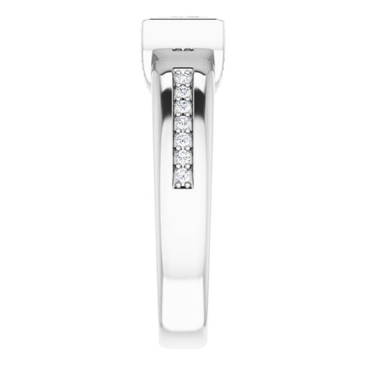 * Your ring’s total carat weight (TCW), band width, weight in grams, and/or number and size of accent, pavé, or halo stones will vary up or down depending on your choice of customizable center stone shape and size, precious metal type, and finger ring size via the drop-down options provided.
