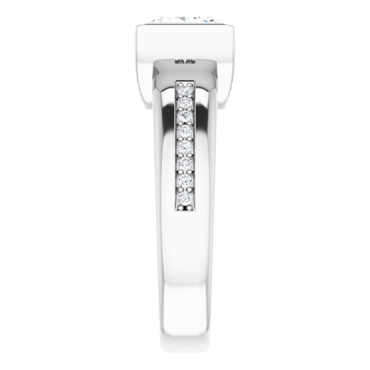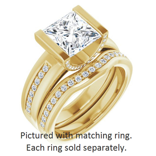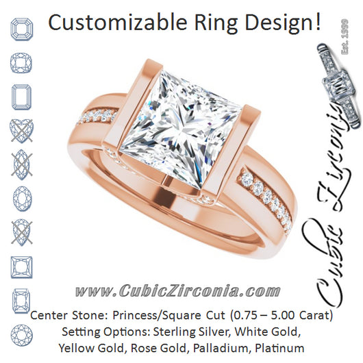 Center Stone Shape: Princess/Square Cut (as pictured). See this customizable ring set with other available center stone shapes here: customize setting.