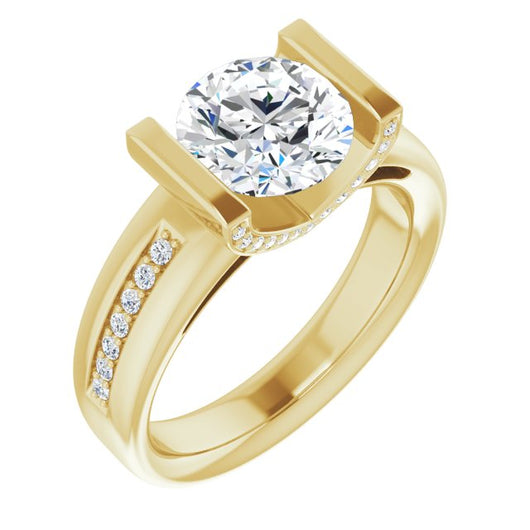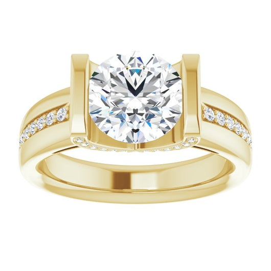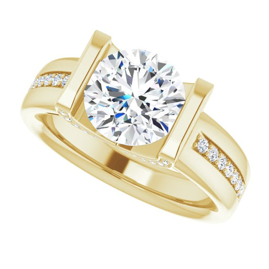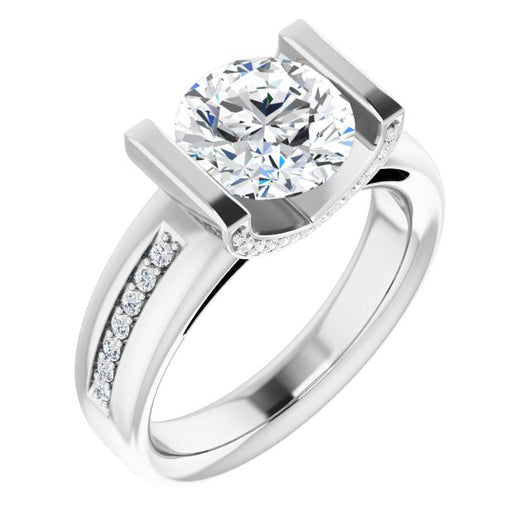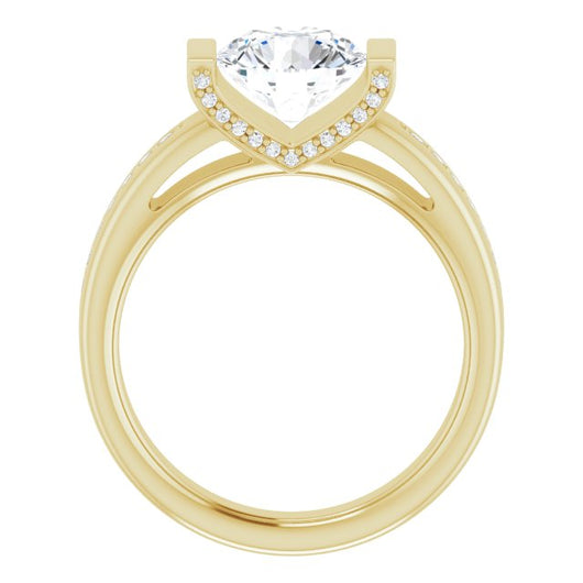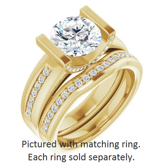 Center Stone Shape: Round Cut (as pictured). See this customizable ring set with other available center stone shapes here: customize setting.