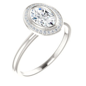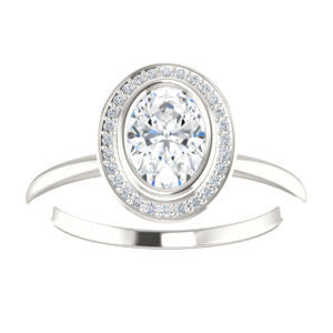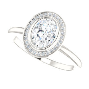 Cubic Zirconia Engagement Ring- The Maura (Customizable Bezel-set Oval Cut Halo Design with Thin Band)