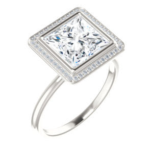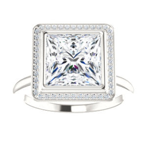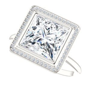Cubic Zirconia Engagement Ring- The Maura (Customizable Bezel-set Princess Cut Halo Design with Thin Band)