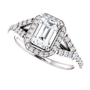 Cubic Zirconia Engagement Ring- The Mayte (Customizable Halo-Style Radiant Cut Design with Split-Pavé Band)