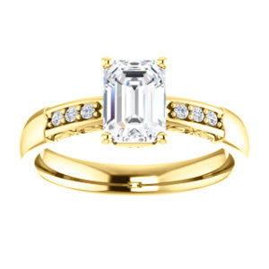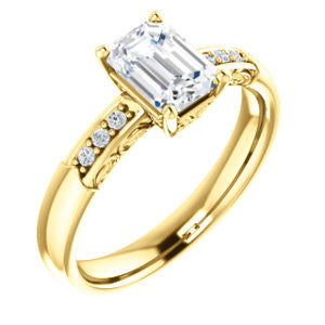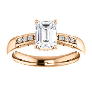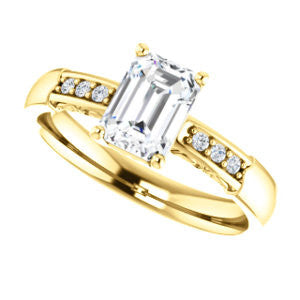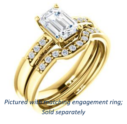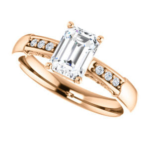 Center Stone Shape: Radiant Cut (as pictured  with Emerald cut). See this customizable ring set with other available center stone shapes here: customize setting.