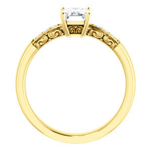 A romantic, sentimental and timeless idea is to go for a classic design with vintage filigree in the French style like this one. In this not-so-humble product description writer's opinion, The Migdala engagement ring has class unsurpassed. Our master jewelers start the design clinic with a simple Radiant Cut center stone from 0.75 to 5.0 carats, and then complement with six (6) round-cut accent stones with three to each side of the center setting.  Then the vintage filigree with French fleur-de-lis inspired flavoring further decorates the same finger you'll crook to get exactly what you want when you want it. This thick, tapered and so-cute-you-might-be-tempted-to-snack-on-it hand-engraved ring will enhance your every outfit from wedding dress to jeans. Get The Migdala engagement ring as a stand-alone or together with the matching anniversary band to complete the cubic zirconia bridal set!