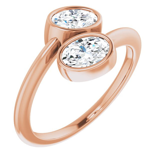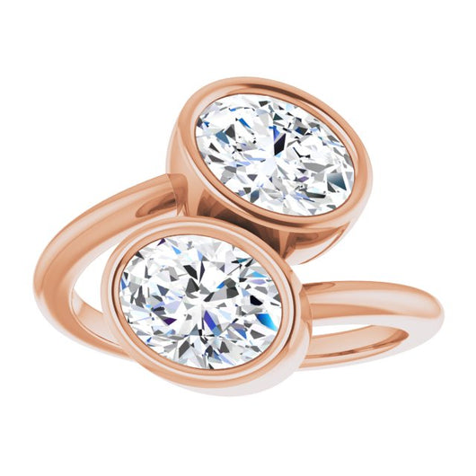 10K Rose Gold Customizable 2-stone Double Bezel Oval Cut Design with Artisan Bypass Band