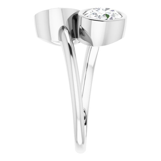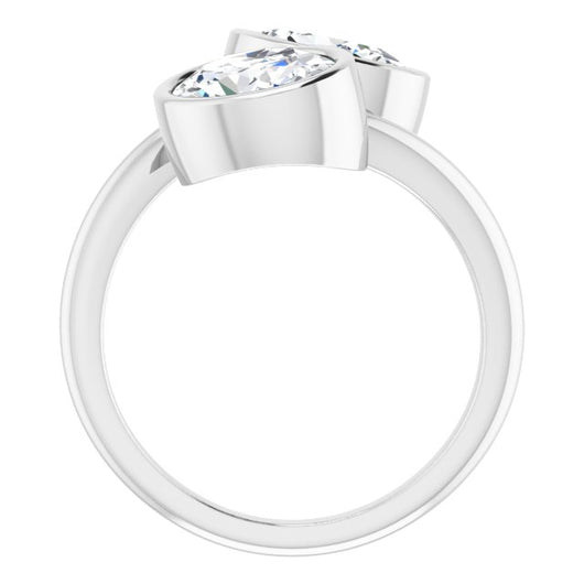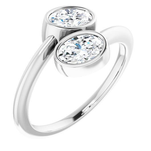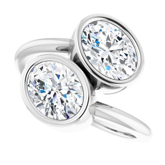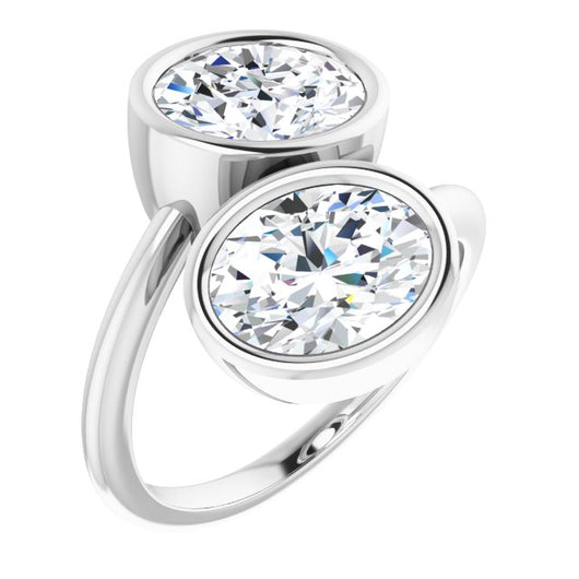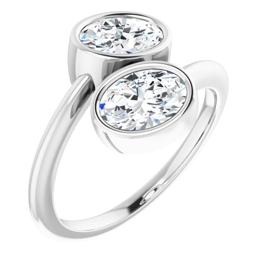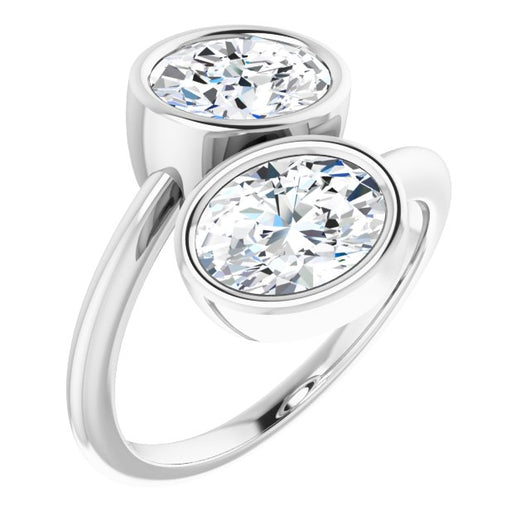 10K White Gold Customizable 2-stone Double Bezel Oval Cut Design with Artisan Bypass Band