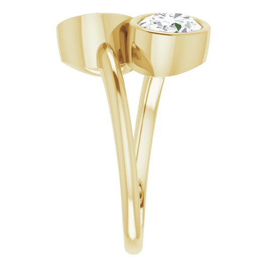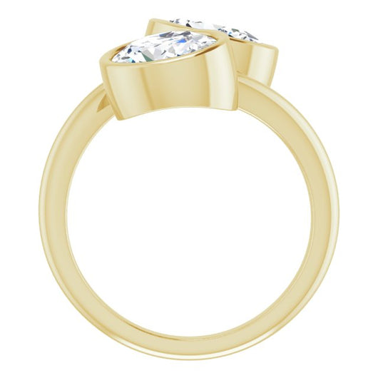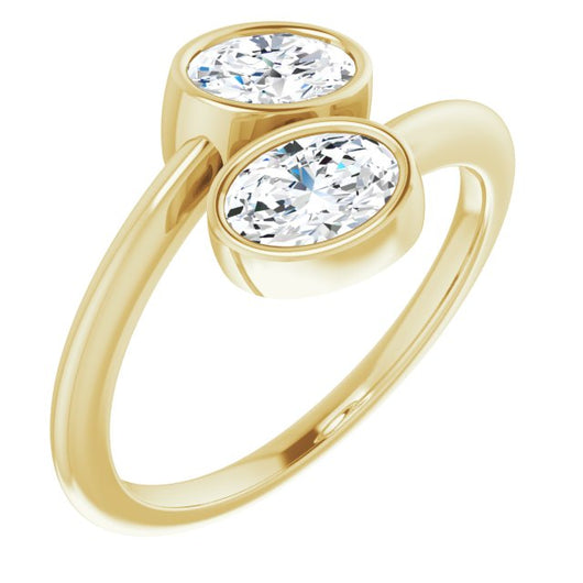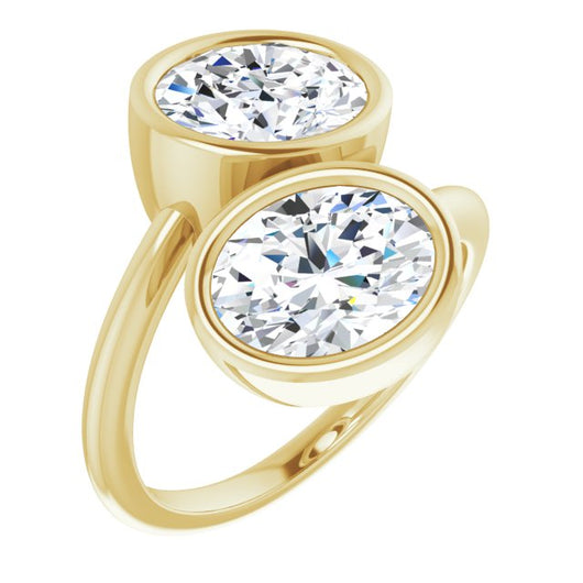 10K Yellow Gold Customizable 2-stone Double Bezel Oval Cut Design with Artisan Bypass Band