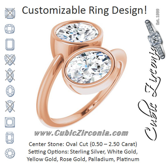 Cubic Zirconia Engagement Ring- The Mirella (Customizable 2-stone Double Bezel Oval Cut Design with Artisan Bypass Band)