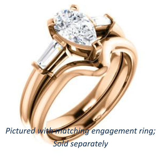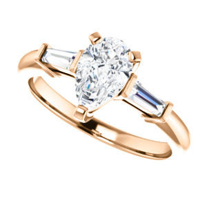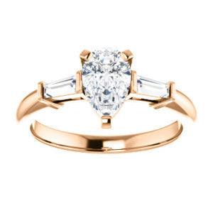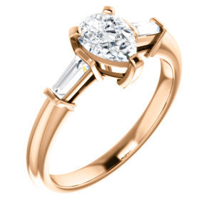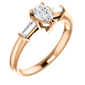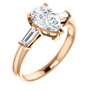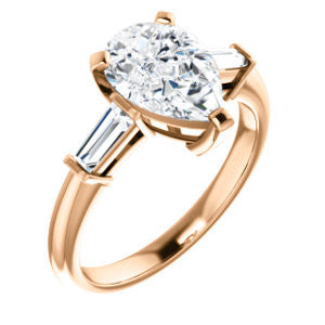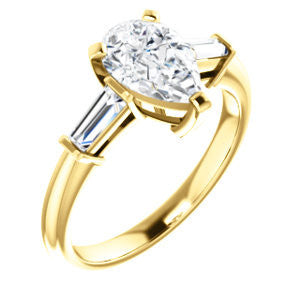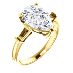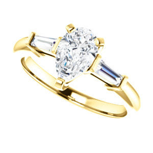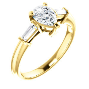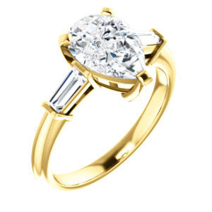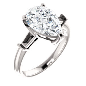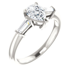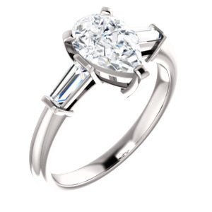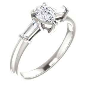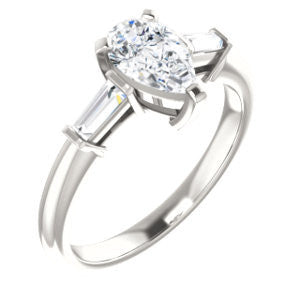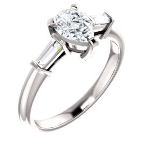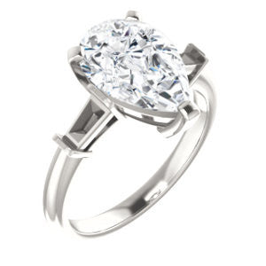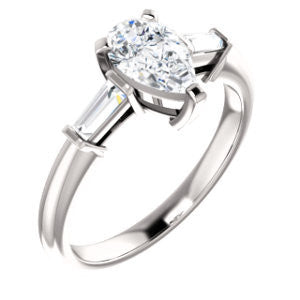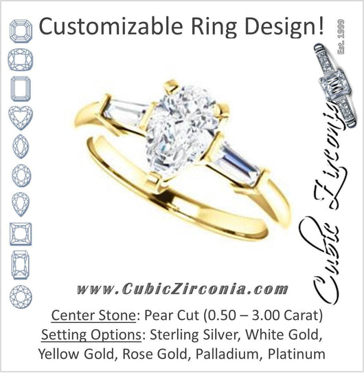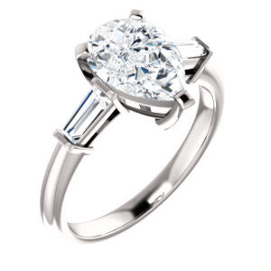 Cubic Zirconia Engagement Ring- The Monica (Customizable Pear Cut Center with Dual Tapered Baguettes)