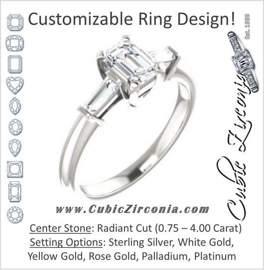 Cubic Zirconia Engagement Ring- The Monica (Customizable Radiant Cut Center with Dual Tapered Baguettes)