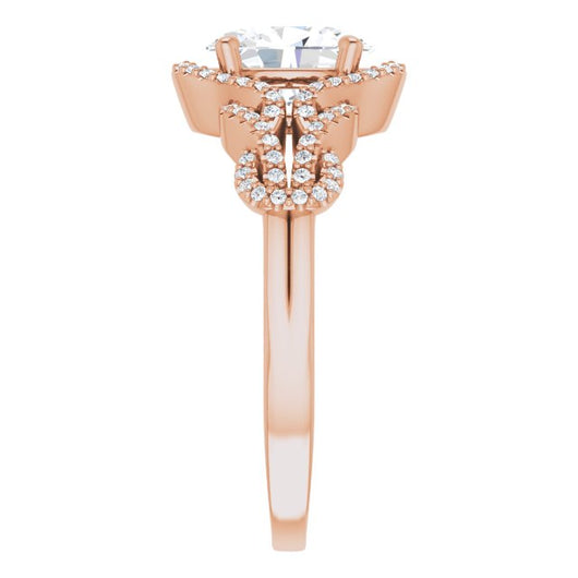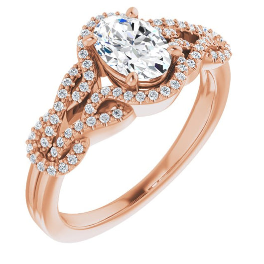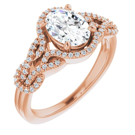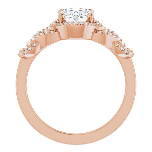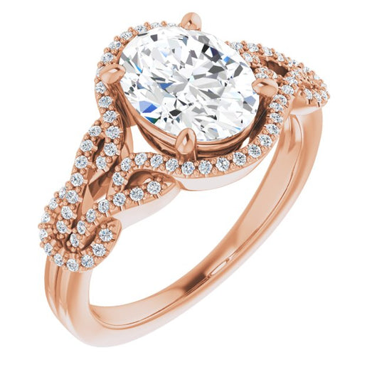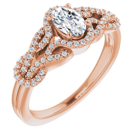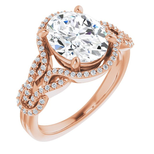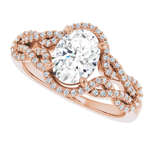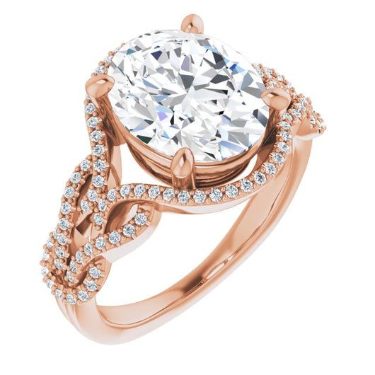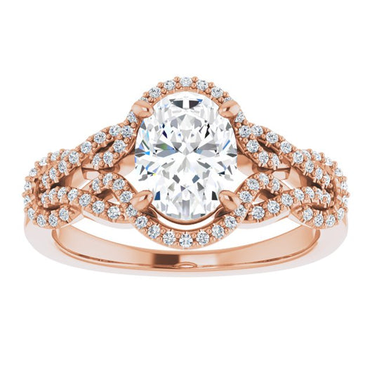 10K Rose Gold Customizable Oval Cut Design with Intricate Over-Under-Around Pavé Accented Band
