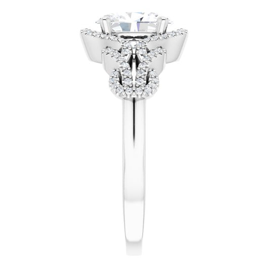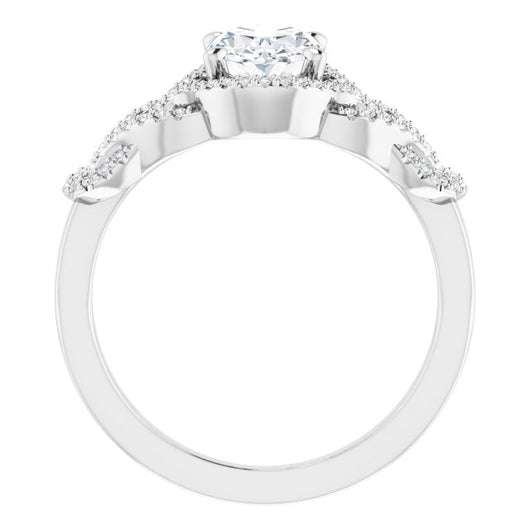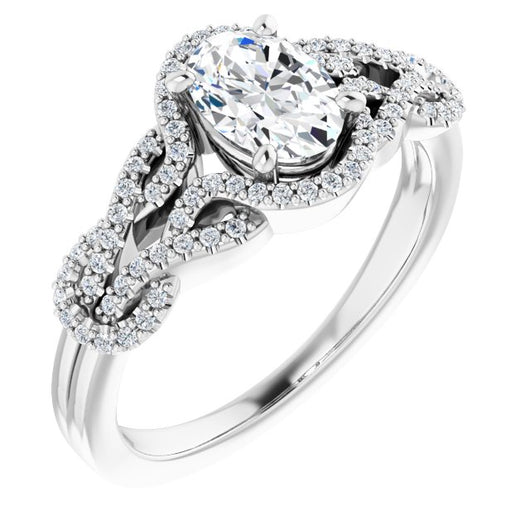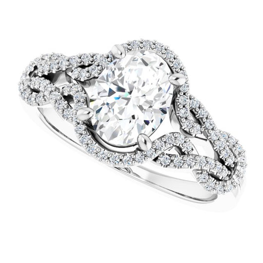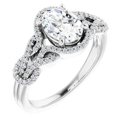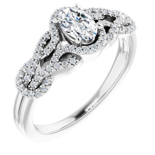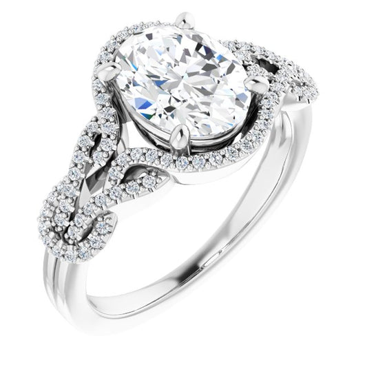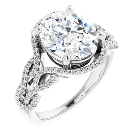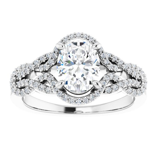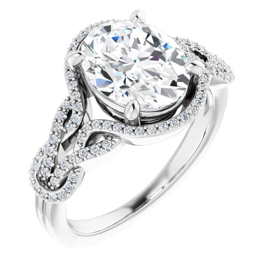 10K White Gold Customizable Oval Cut Design with Intricate Over-Under-Around Pavé Accented Band