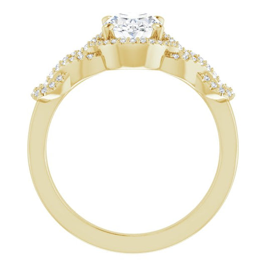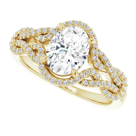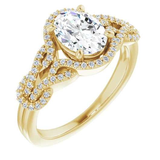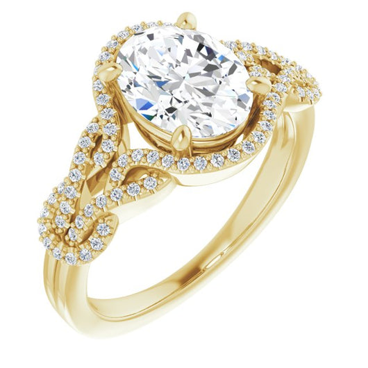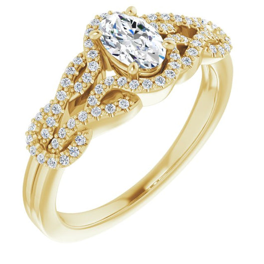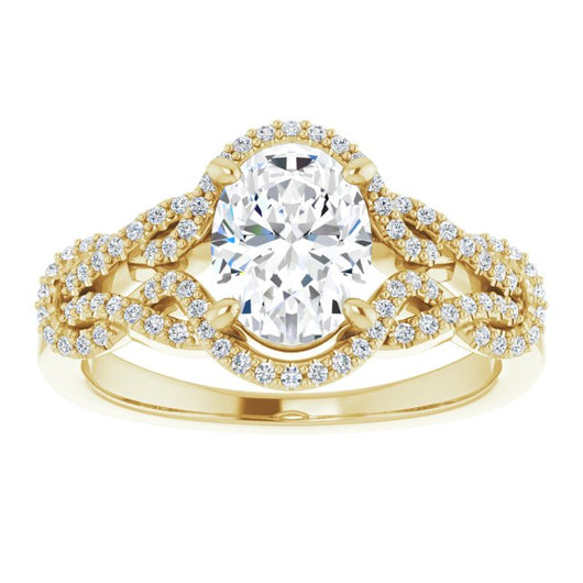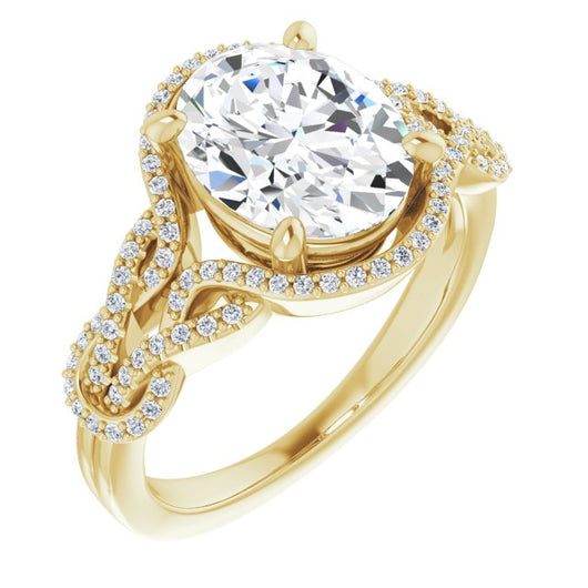 10K Yellow Gold Customizable Oval Cut Design with Intricate Over-Under-Around Pavé Accented Band