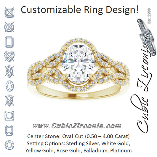 Cubic Zirconia Engagement Ring- The Montana (Customizable Oval Cut Design with Intricate Over-Under-Around Pavé Accented Band)