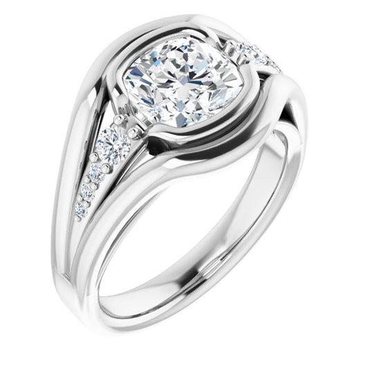 Center Stone Shape: Cushion Cut (as pictured). See this customizable ring set with other available center stone shapes here: customize setting.