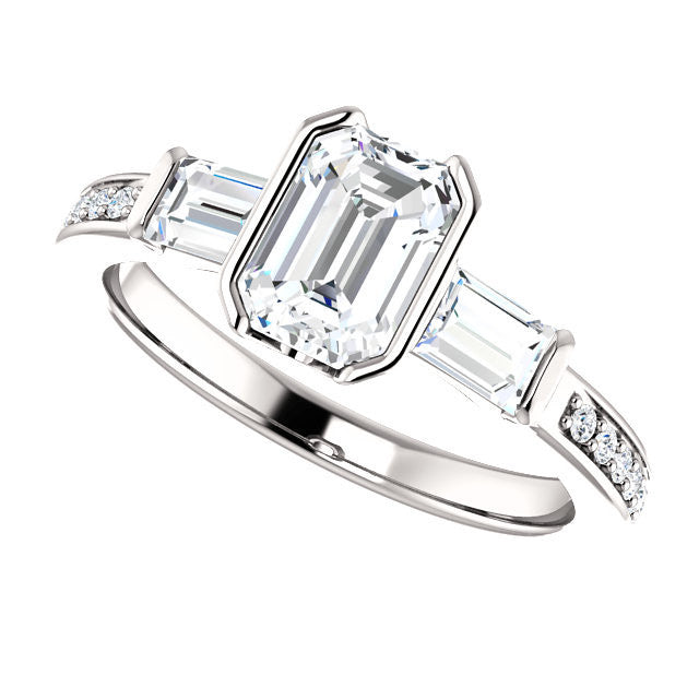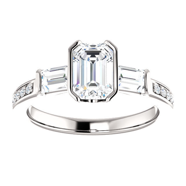 Cubic Zirconia Engagement Ring- The Naomi (Customizable Bezel-set Emerald Cut Design with Dual Baguettes & Pavé Band)